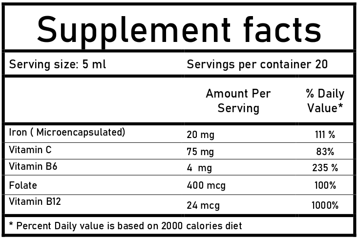 Adevita Iron is a highly bioavailable liquid iron supplement designed to support healthy red blood cell production and maintain normal energy levels for the whole family. Its gentle, fast-absorbing formula combines Iron with Vitamin C to enhance absorption, while Vitamins B6, Folate, and B12 work together to promote healthy hemoglobin formation and overall blood health.*