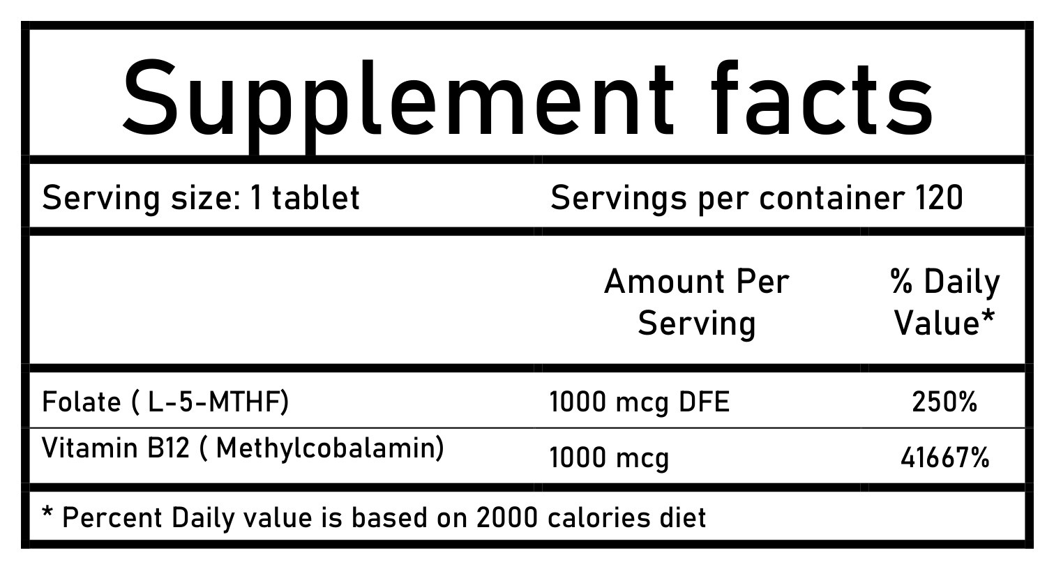 A premium active-form folate and B12 formula featuring L-5-MTHF and Methylcobalamin in a quick-dissolve tablet. Supports mood, neurological function, energy production, and healthy homocysteine levels.